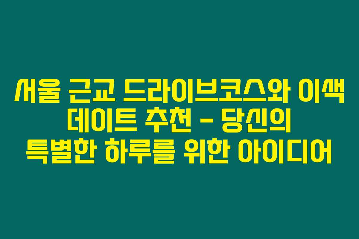 드라이브는 기분 전환에 정말 도움이 많이 되는 활동인데요. 특히 서울 근교에는 드라이브하면서 자연과 도시의 아름다움을 동시에 느낄 수 있는 장소들이 여러분을 기다리고 있어요. 데이트 아이디어가 필요하다면 위의 드라이브코스를 고려해보세요. 멋진 하루가 될 거예요!