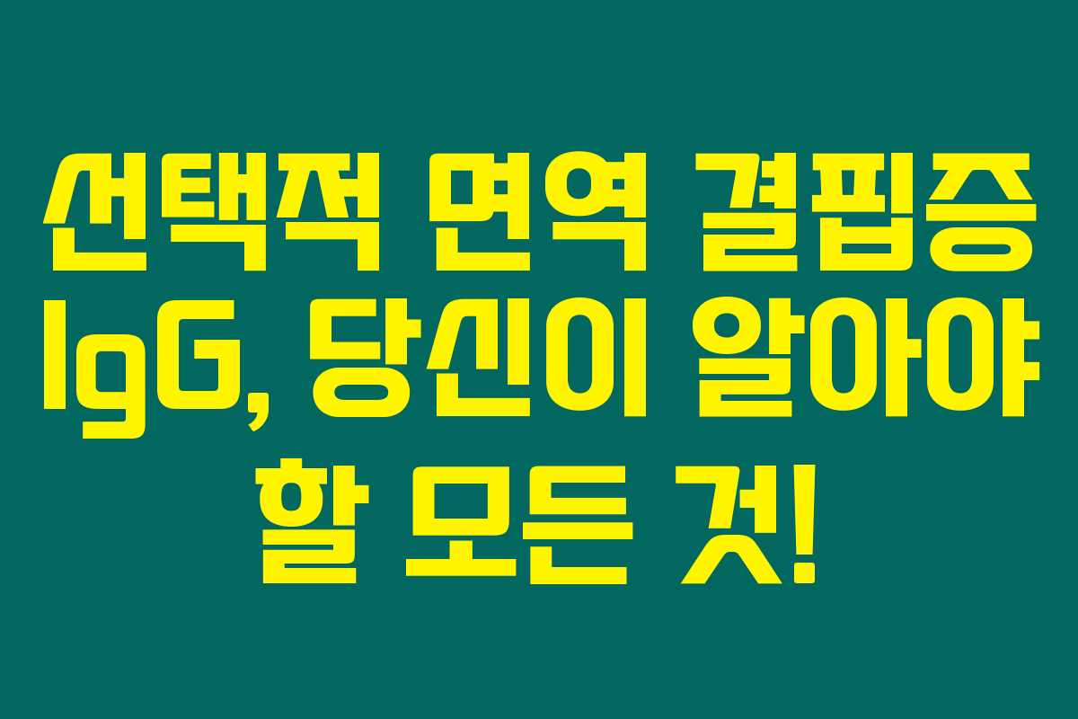선택적 면역 결핍증 IgG, 이거 알고 계신가요? 만약 감염에 시달린다면, 꼭 주목해야 해요. IgG 결핍증은 면역 시스템의 일부가 약해져 감염에 더욱 취약해지는 상태랍니다. 아래를 읽어보시면 이를 이해하고, 대처 방법도 알아갈 수 있으니 꼭 확인해 보세요!