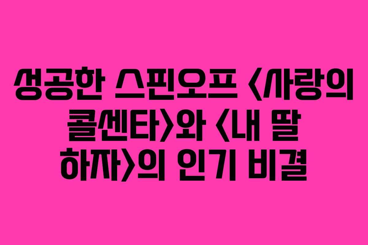 최근 높은 시청률을 유지하며 사랑받고 있는 <사랑의 콜센타>와 그 뒤를 이어 출격한 <내 딸 하자>의 성공 비결을 분석해 보겠습니다. 이 두 프로그램은 각각의 인기 오디션 프로그램인 <미스터트롯>과 <미스트롯2>의 인기를 기반으로 한 스핀오프 형식으로, 방송계에서 큰 기록을 세우고 있습니다.