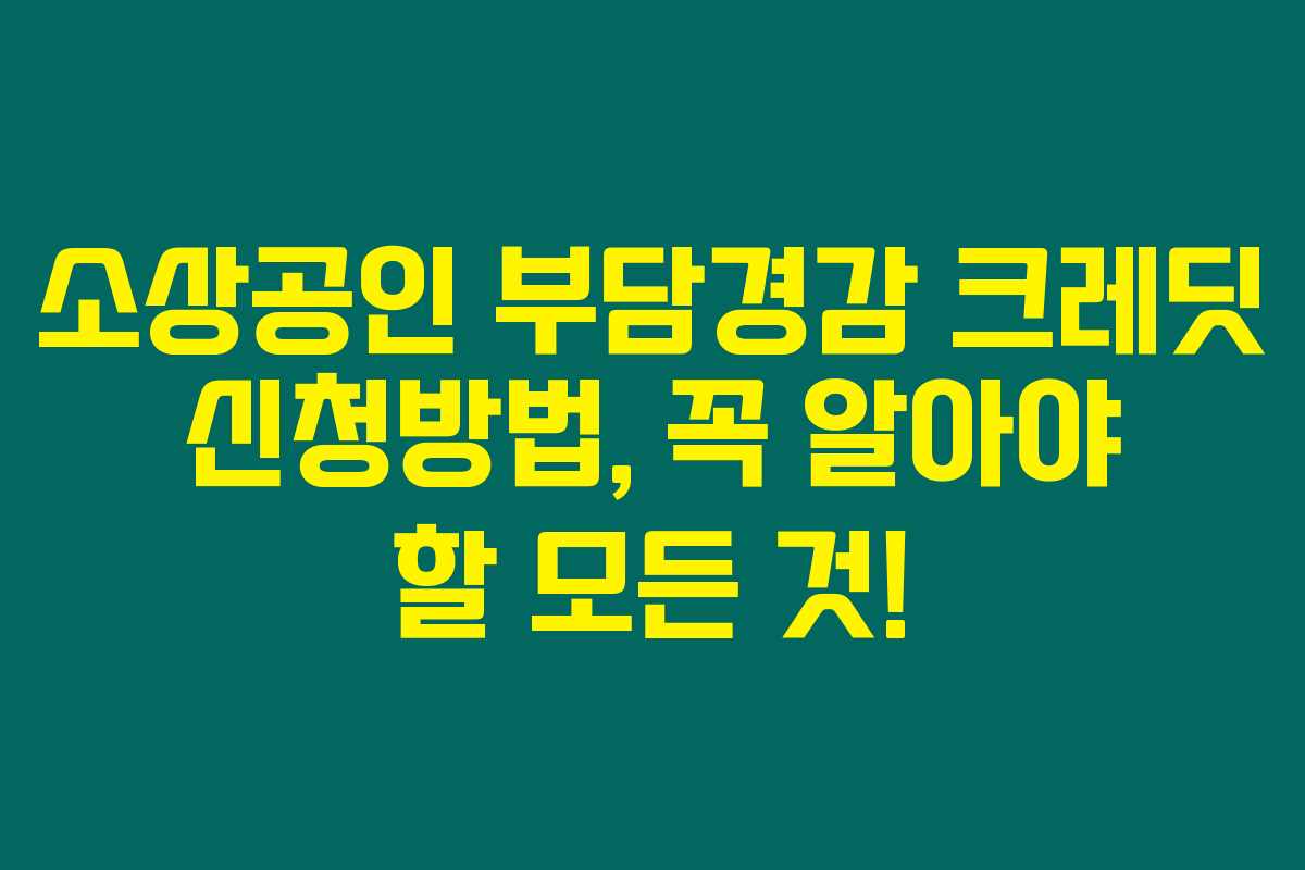 소상공인 부담경감 크레딧 신청은 생각보다 간단하답니다. 아래를 읽어보시면 여러분의 사업에 도움이 될 만한 유익한 정보가 가득하니 꼭 참고해 주세요!