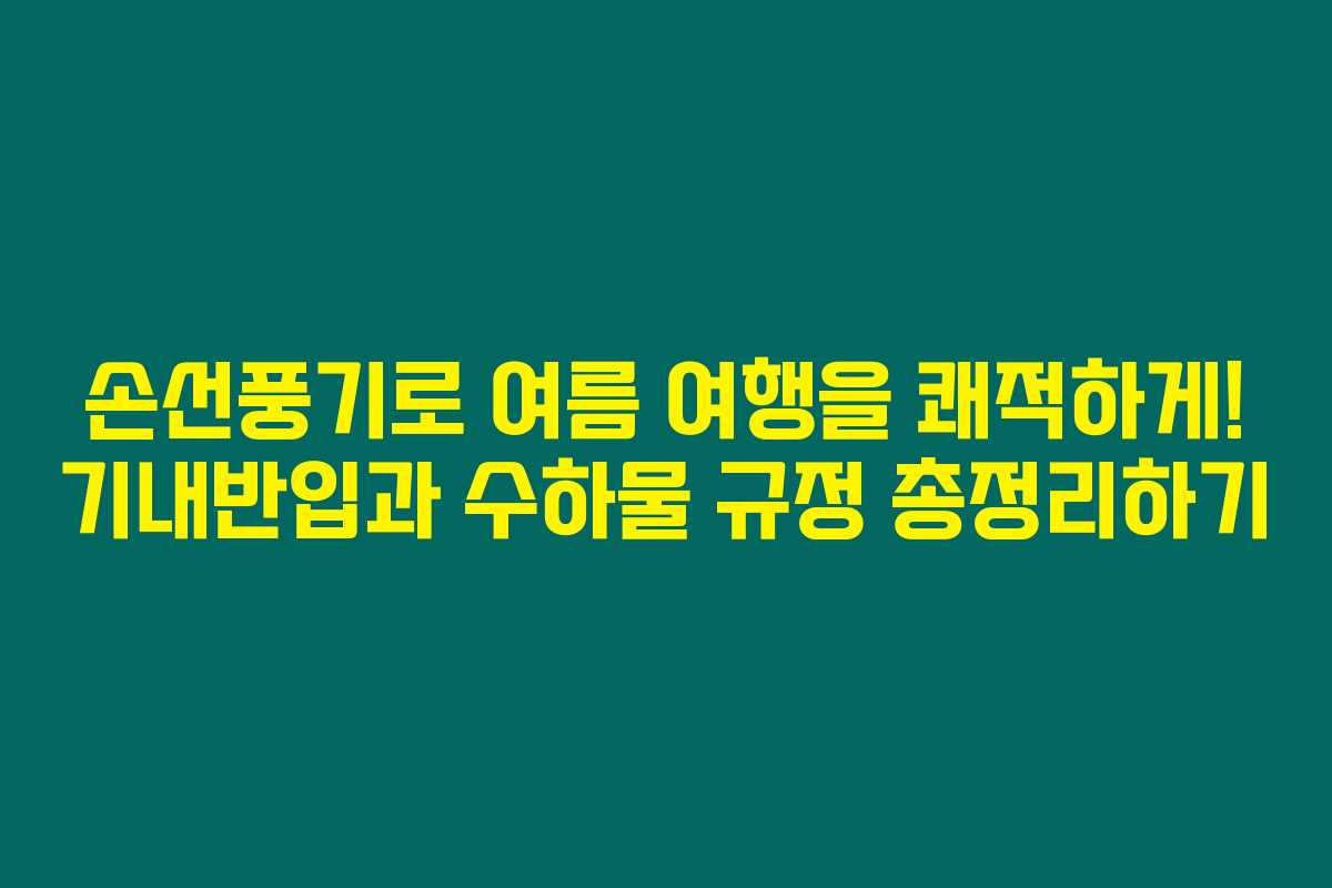 여름철 여행이 다가오면 시원하게 사용할 수 있는 손선풍기를 생각하게 되지요. 제가 직접 경험해본 결과로는, 여행 중 휴대용 손선풍기가 정말 유용하게 쓰일 수 있는 아이템입니다. 그러나 비행기를 타기 전, 손선풍기를 기내에 반입할 수 있는지, 수하물로 보낼 수 있는지에 대한 규정을 미리 확인하는 것이 필요합니다. 아래를 읽어보시면, 자세한 정보를 통해 안전하게 여행 준비를 할 수 있을 거예요.