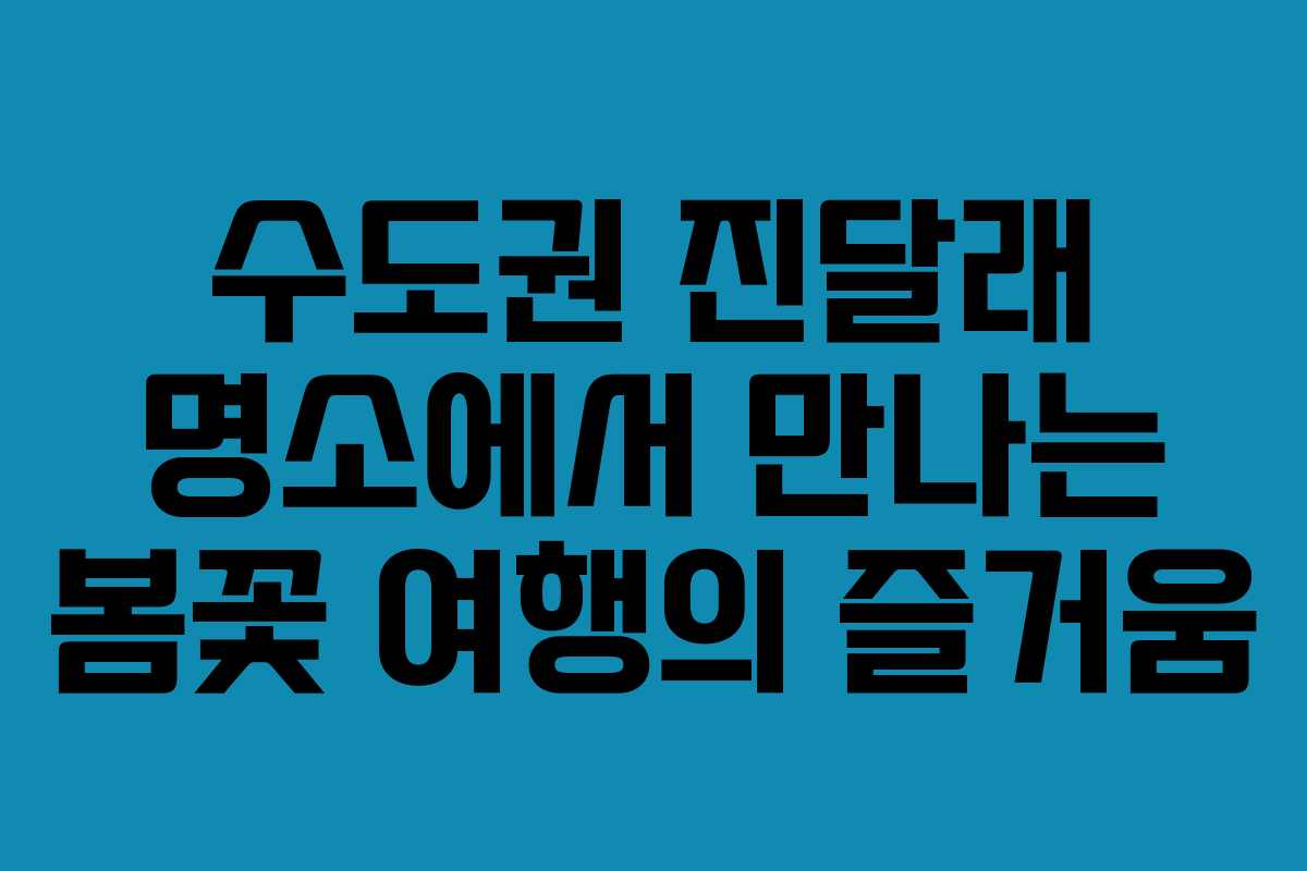 봄이 찾아오면 진달래가 만개하는 시기가 다가온다. 서울을 벗어나 수도권의 숨은 진달래 명소를 찾아 떠나는 것은 특별한 경험이 될 수 있다. 복잡한 도시를 떠나 한적한 장소에서 진달래의 아름다움을 만끽하며 자연을 느껴보는 것은 삶의 질을 높이는 좋은 방법이기도 하다. 이번 글에서는 2026년 기준으로 수도권에서 추천하는 진달래 명소 6곳을 소개하겠다. 각 명소에서 느낄 수 있는 자연의 아름다움과 인근의 맛집 정보도 함께 제공할 예정이다.