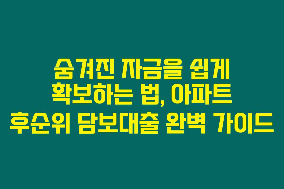 이처럼, 아파트 후순위 담보대출을 신청하기 위한 조건과 자격을 잘 알고 준비하는 것이 중요해요.