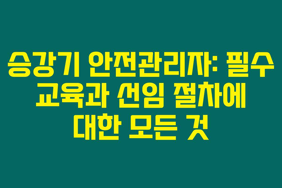 제가 직접 경험해본 결과로는, 승강기 안전관리자의 중요성은 이루 말할 수 없더라고요. 건축물에 설치된 승강기는 안전이 최우선이며, 많은 사람들이 이용하는 만큼 적절한 관리가 필요합니다. 아래를 읽어보시면 승강기 안전관리자 교육과 선임 절차에 대한 모든 정보를 알차게 정리한 내용을 확인하실 수 있습니다.