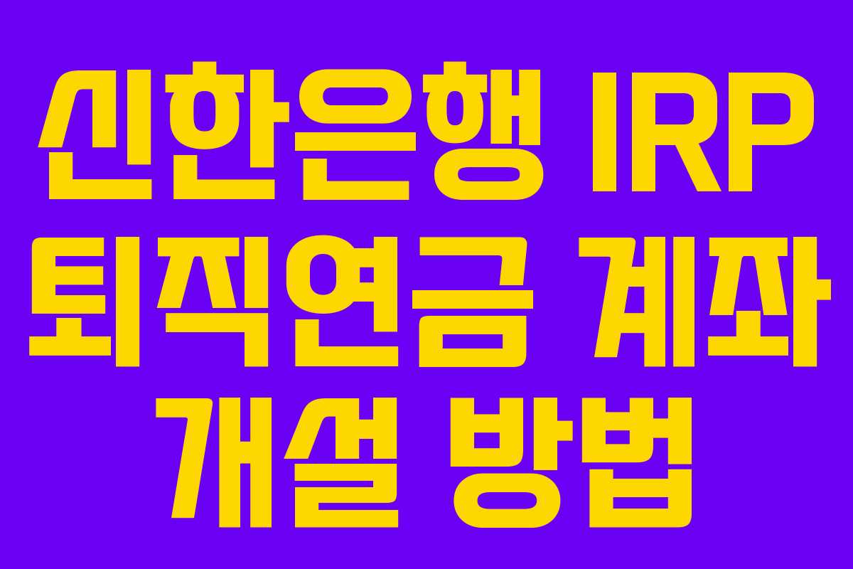개인형 퇴직연금(IRP) 계좌는 노후 준비를 위해 필수적인 금융 상품입니다. 신한은행의 IRP 계좌는 다양한 혜택과 편리한 절차로 많은 이들의 선택을 받고 있습니다. 이번 글에서는 신한은행 IRP 계좌를 개설하는 방법에 대해 알아보겠습니다.