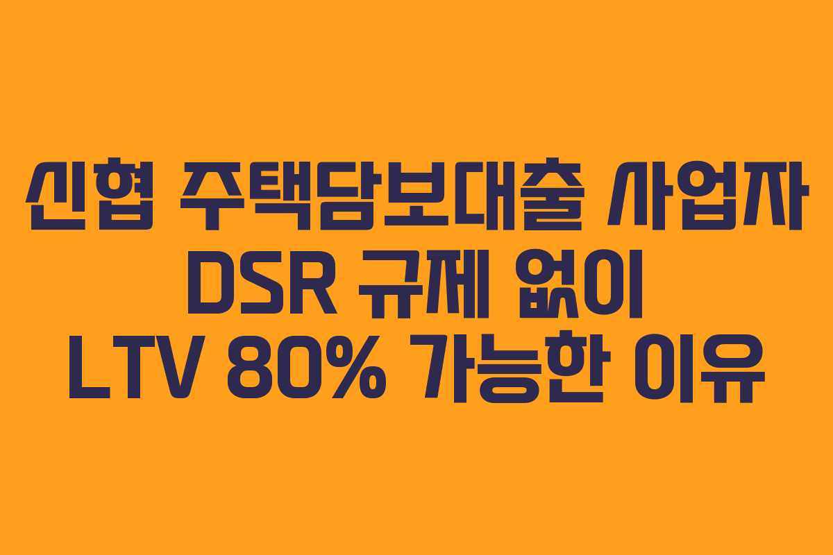 - LTV 80%까지 활용하고 싶은 사업자: 신협의 완화된 규정을 활용할 수 있습니다.