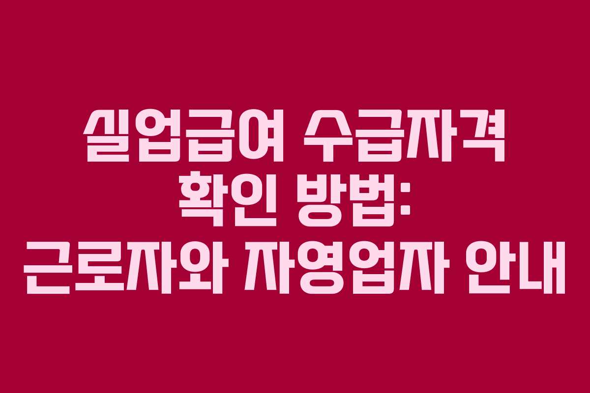 실업급여는 경제적으로 어려운 상황에 처한 근로자와 자영업자에게 중요한 지원 제도입니다. 이 제도를 활용하기 위해서는 각자의 상황에 맞는 수급 자격을 확인하는 것이 필수적입니다. 본 글에서는 근로자와 자영업자가 각각 실업급여 수급 자격을 확인하는 방법에 대해 자세히 안내하겠습니다.
