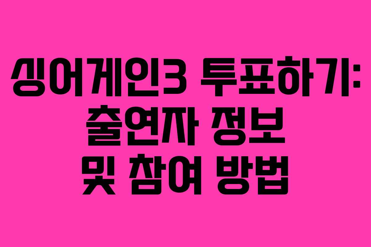 싱어게인3는 매주 목요일 밤 10시에 JTBC에서 방송되며, 온라인 사전투표를 통해 시청자들이 직접 참여할 수 있습니다. 이번 시즌에는 다양한 무명 가수들이 출연하여 각자의 끼를 발산하며 경쟁하고 있습니다.