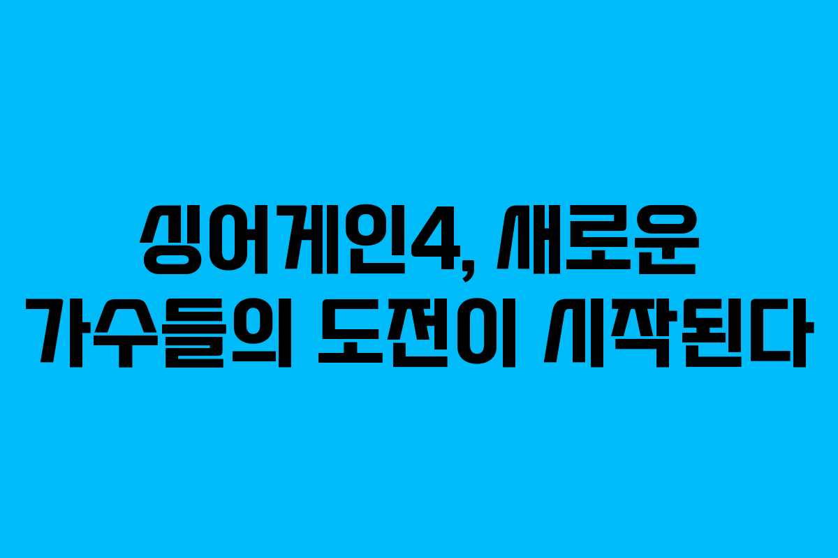 2025년 10월 14일, JTBC에서 방영되는 싱어게인-무명가수전 시즌4가 드디어 첫 방송을 시작합니다. 이번 시즌은 무대에서 다시 한번 기회를 찾고자 하는 가수들을 위한 오디션 프로그램으로, 역대급 경쟁률과 참가자 수를 기록하며 기대를 모으고 있습니다.