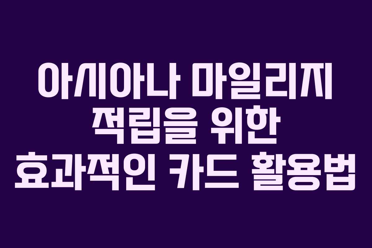 질문1: 아시아나 마일리지를 어떻게 효율적으로 모을 수 있나요?