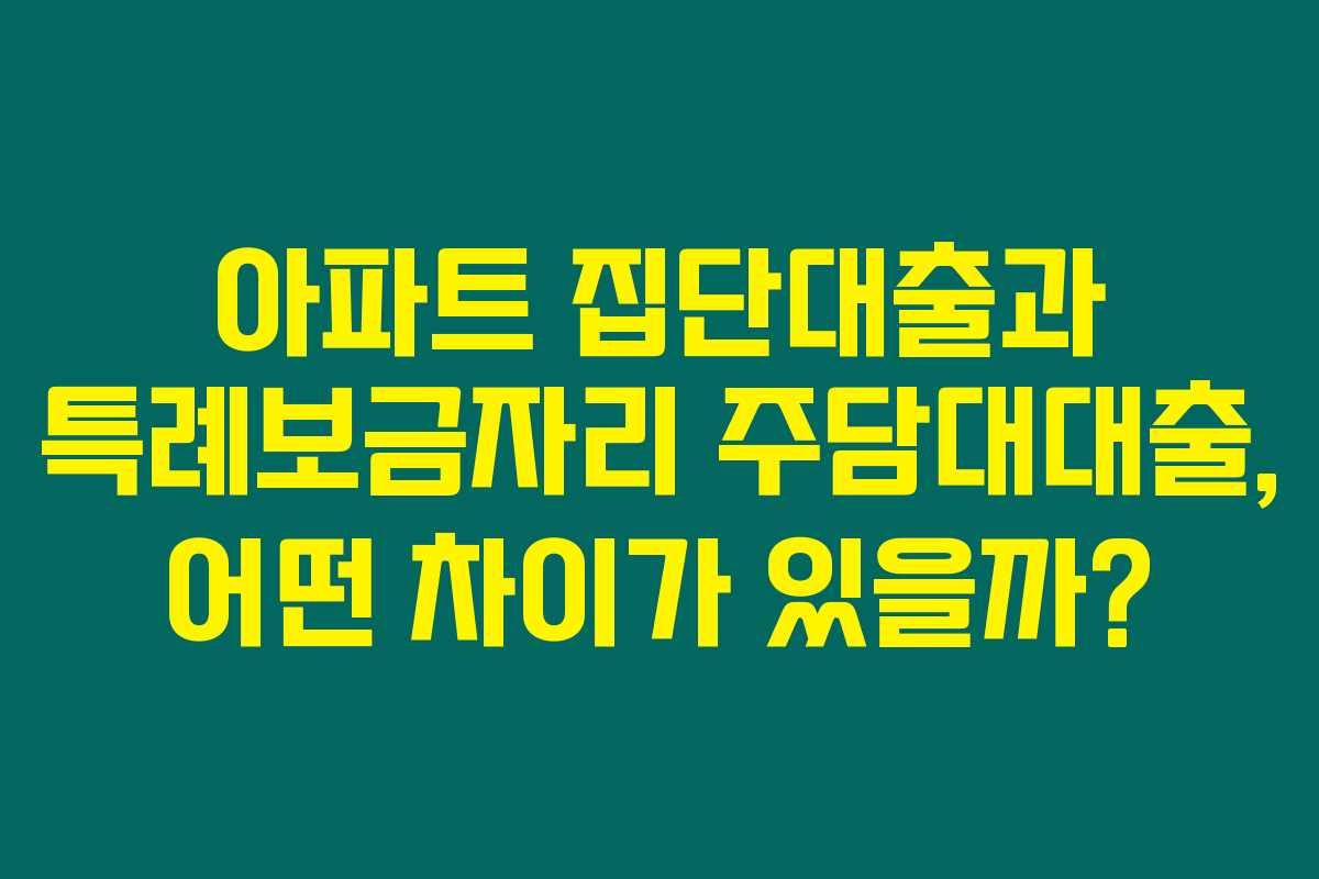 아파트 구매를 고려 중이라면 주택담보대출의 다양한 조건들이 궁금할 텐데요. 특히 ‘아파트 집단대출’과 ‘특례보금자리 주담대대출’은 가장 많이 비교되는 상품 중 하나예요. 만약 현재 대출 상품을 찾고 있다면 아래를 읽어보시면 이 두 대출 상품의 차이점과 선택 기준에 대한 유용한 정보를 확인할 수 있을 거예요.