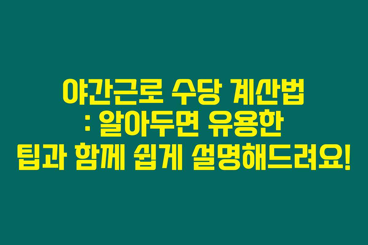 제가 직접 경험해본 결과로는 야간근로 수당에 대해 궁금한 분들이 많으신 것을 알게 되었어요. 특히 시급제 근로자가 일하는 경우에는 수당 계산이 복잡해질 수 있기 때문에, 정확한 계산 방법이 필요합니다. 이 글을 통해 야간근로 수당의 정의, 계산 방식, 연장근로와의 차이점 등을 정리해 드릴게요.