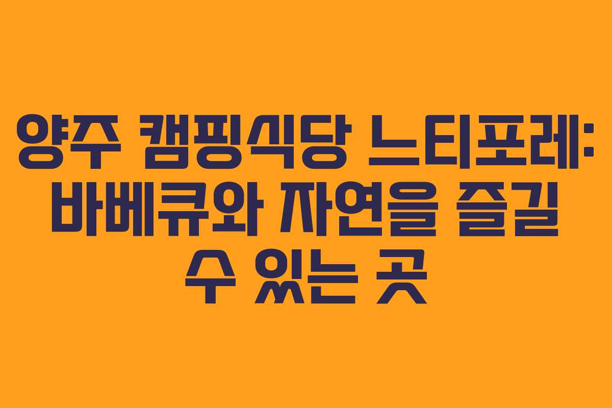 양주에 위치한 캠핑식당 느티포레는 간편하게 바베큐를 즐길 수 있는 매력적인 장소입니다. 캠핑의 느낌을 만끽하면서도 복잡한 준비 없이 고기를 구워먹을 수 있어 가족 단위 방문객들에게 적합합니다.