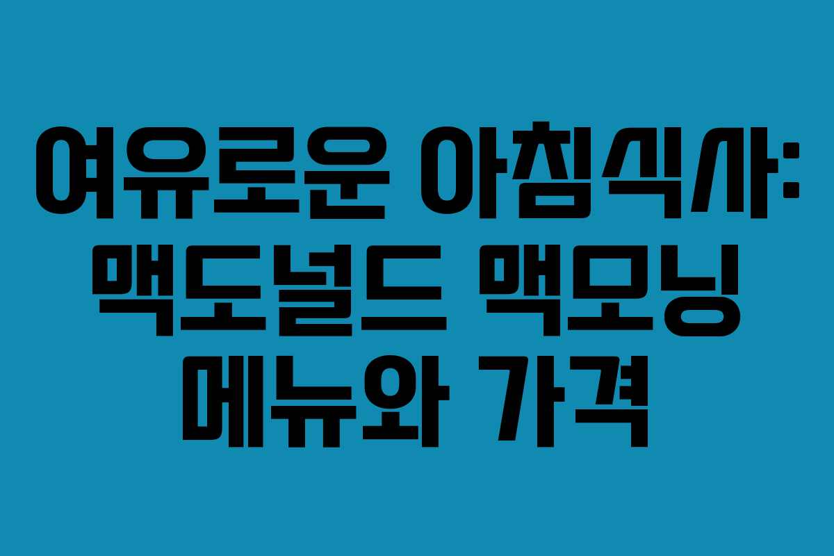 여유로운 아침식사: 맥도널드 맥모닝 메뉴와 가격
