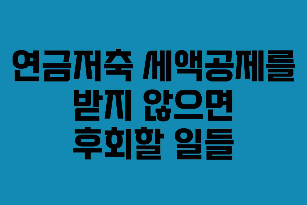 연금저축 세액공제를 받지 않으면 어떤 일이 생길까요?