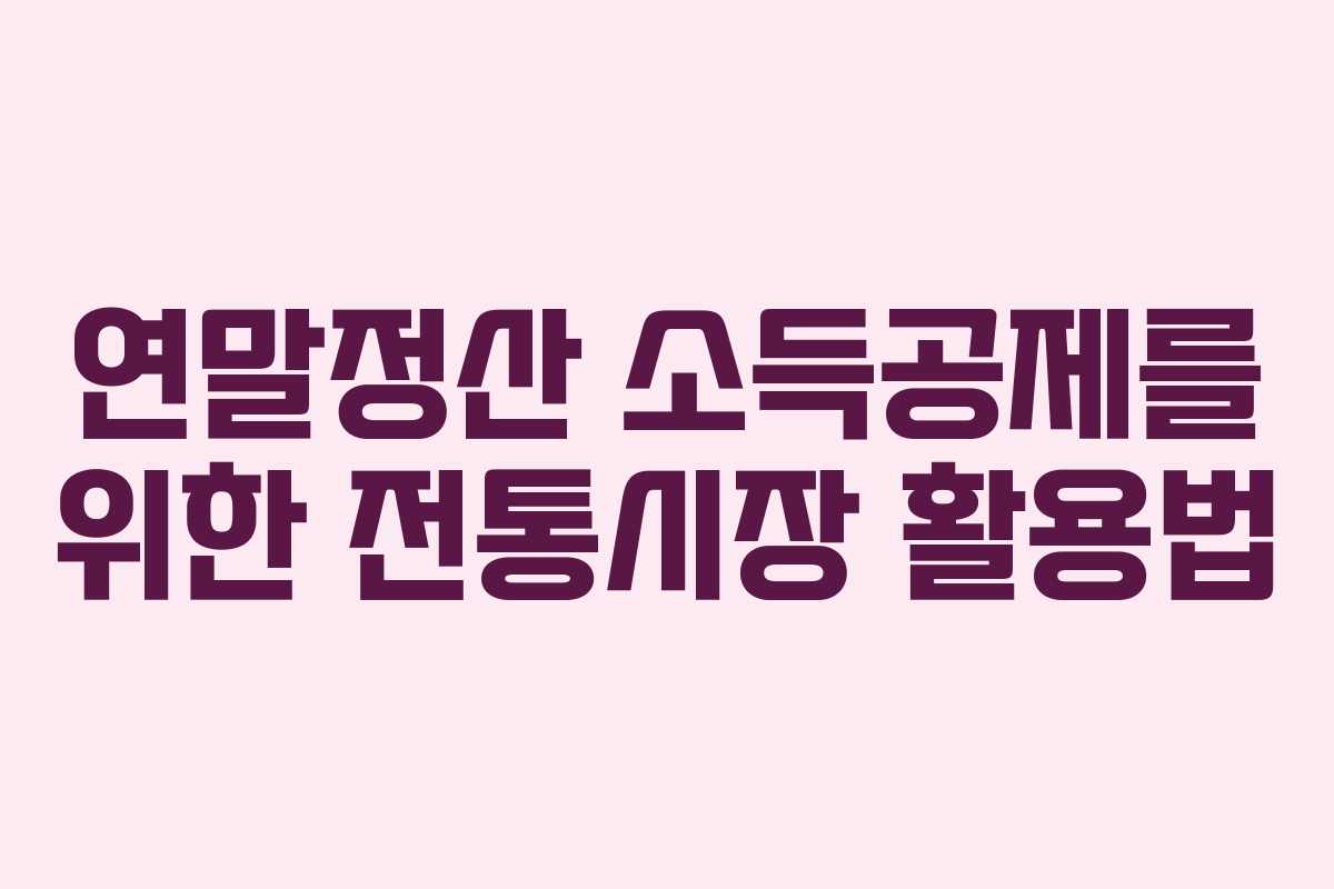연말정산을 준비하는 과정에서 소득공제를 받을 수 있는 전통시장을 활용하면 세금 부담을 줄일 수 있습니다. 이번 글에서는 소득공제를 받을 수 있는 전통시장의 종류와 확인 방법에 대해 알아보겠습니다.