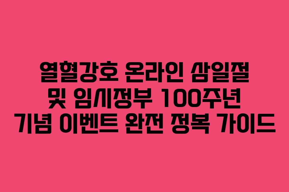 열혈강호 온라인 삼일절 및 임시정부 100주년 기념 이벤트 완전 정복 가이드
