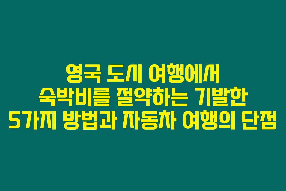 영국은 매력적인 도시로 가득 차 있지만 숙박비가 비쌀 수 있거든요. 이 글에서는 영국 도시 여행에서 숙박비를 절약할 수 있는 5가지 방법과 여행 중 자동차 이용의 단점을 함께 살펴보겠습니다.