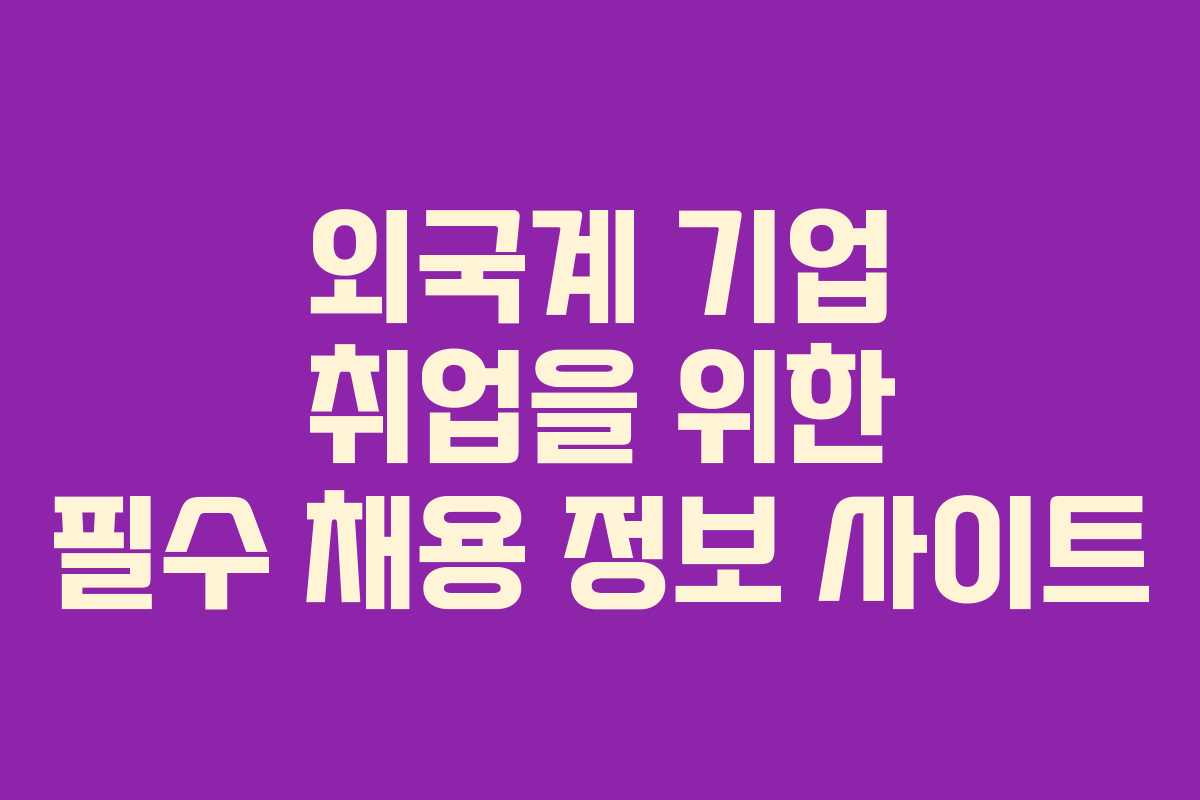 외국계 기업에 취업하고자 하는 많은 사람들이 양질의 채용 정보를 찾고 있습니다. 하지만 국내 대형 구인/구직 사이트와는 달리, 외국계 기업에 특화된 채용 사이트는 쉽게 찾아보기 어렵습니다. 외국계 기업들은 공채를 진행하기보다 필요에 따라 수시로 채용을 진행하는 경향이 있어, 관련 사이트를 자주 방문하는 것이 중요합니다. 이번 글에서는 외국계 기업 취업에 유용한 채용 정보 사이트를 소개하겠습니다.