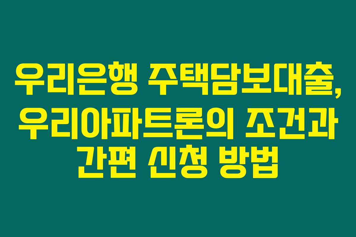 제가 직접 확인해본 바로는, 우리은행 주택담보대출 중 대표적인 상품인 우리아파트론은 대출 조건이 유리하고, 신청 절차가 간편해 많은 분들에게 인기를 끌고 있습니다. 오늘은 주택담보대출을 알아보는 분들을 위해 우리아파트론의 자격 조건 및 신청 방법을 자세히 안내해드릴게요. 아래를 읽어보시면 대출 이용에 큰 도움이 되실 거예요.