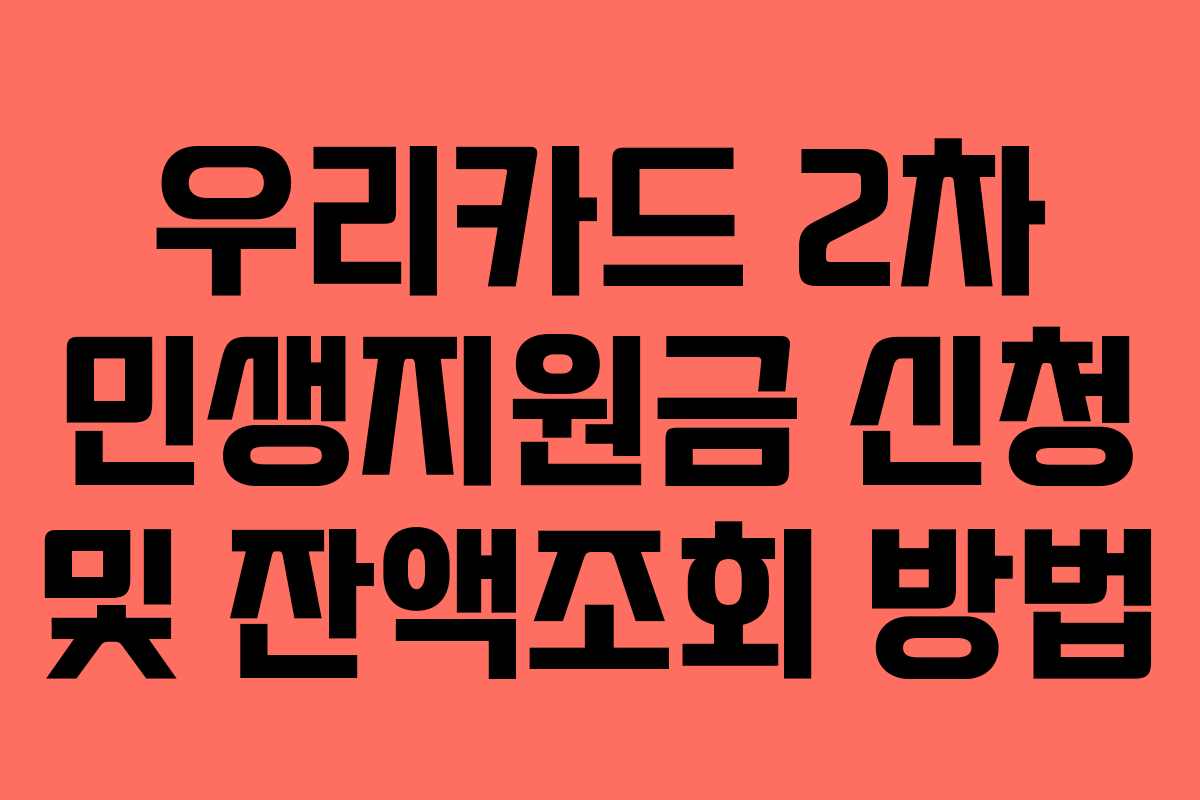 마무리하자면, 우리카드 2차 민생지원금 신청은 여러 방법으로 간편하게 진행할 수 있으며, 잔액 조회는 우리WON카드 앱을 통해 실시간으로 확인하는 것이 가장 편리합니다. 사용 기한을 고려하여 알뜰하게 지원금을 활용하시기 바랍니다.
