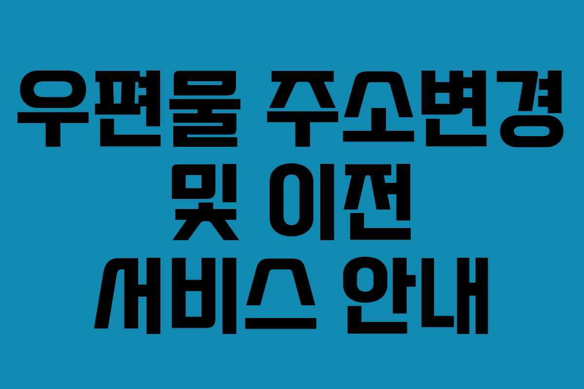 우편물 주소변경 서비스는 이사 후에도 이전 주소로 온 우편물을 새로운 주소로 전달받을 수 있도록 도와주는 기능입니다. 이 서비스를 이용하면 번거롭게 모든 우편물 주소를 변경할 필요 없이 일정 기간 동안 우편물을 받을 수 있습니다. 주민센터나 정부 24에서는 이를 ‘우편물 전입지 전송 서비스’라고 하며, 우체국에서는 ‘주거이전 우편물 전송 서비스’라고 부릅니다.