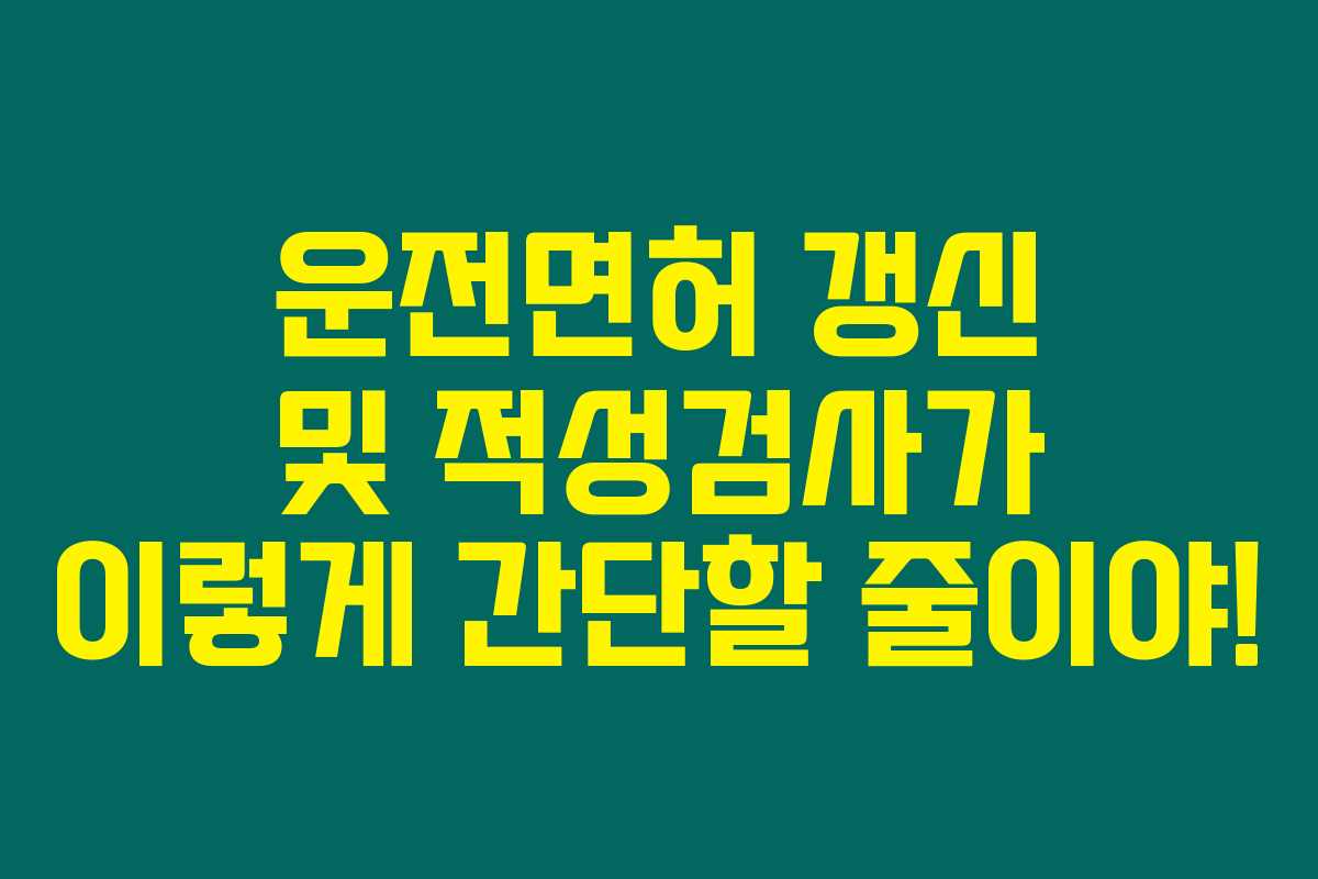 운전면허 갱신과 적성검사를 곧 해야 한다면 이 글을 주목하세요! 기존 면허 갱신 절차가 번거롭다고 생각한 분들이라면, 온라인으로 쉽게 할 수 있는 방법이 있다는 사실을 알아야 해요. 많은 사람들이 이 방법을 모르고 시간을 낭비하곤 해요.