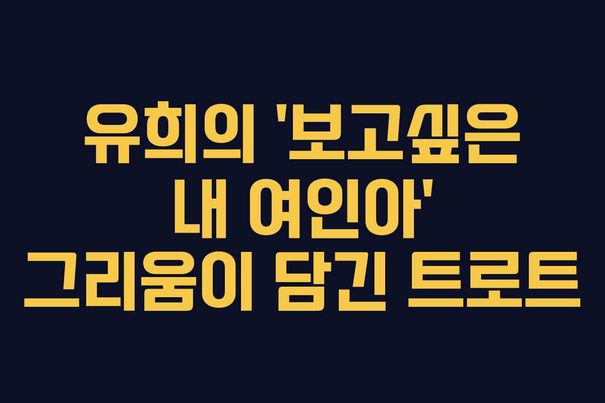 유희의 ‘보고싶은 내 여인아’는 그리움과 사랑의 감정을 담은 트로트 곡으로, 많은 이들에게 깊은 감동을 주고 있습니다. 이 노래는 잃어버린 사랑을 회상하며 그리워하는 마음을 표현하고 있어, 듣는 이로 하여금 공감하게 합니다.