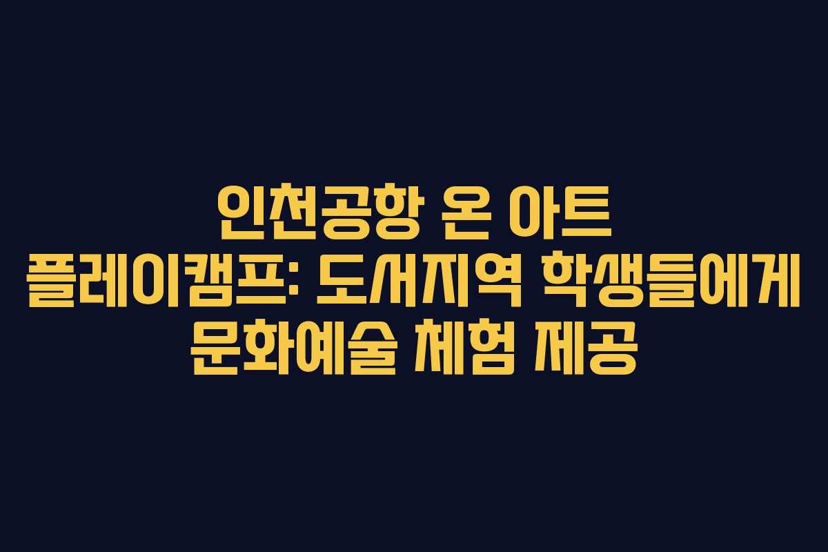 인천국제공항공사는 지역사회 맞춤형 문화예술 교육 프로그램인 ‘온-아트 스쿨’을 운영하며, 도서지역 학생들에게 다양한 문화예술 경험을 제공하고 있습니다.
