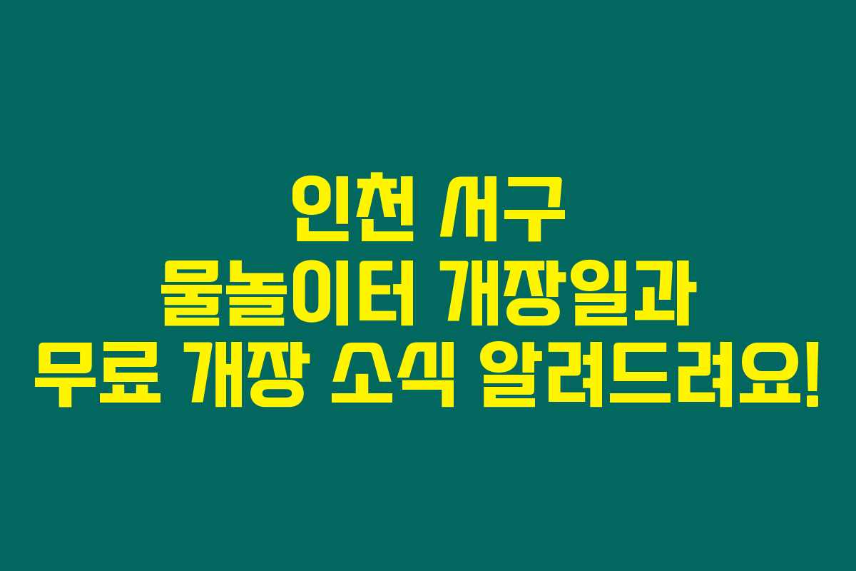 인천 서구 물놀이터 개장일과 무료 개장 소식 알려드려요!
