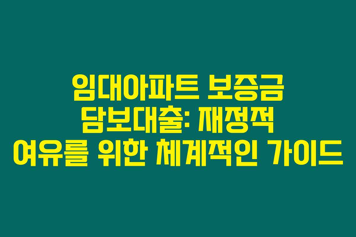 - 임대아파트 보증금 담보대출의 개념 이해하기