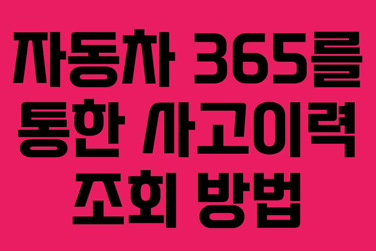 중고차를 구매할 때 가장 중요한 과정 중 하나는 사고이력 조회입니다. 이를 통해 안전하고 신뢰할 수 있는 차량을 선택할 수 있습니다. 자동차 365라는 정부 서비스는 이러한 사고이력을 쉽게 확인할 수 있는 유용한 도구입니다.
