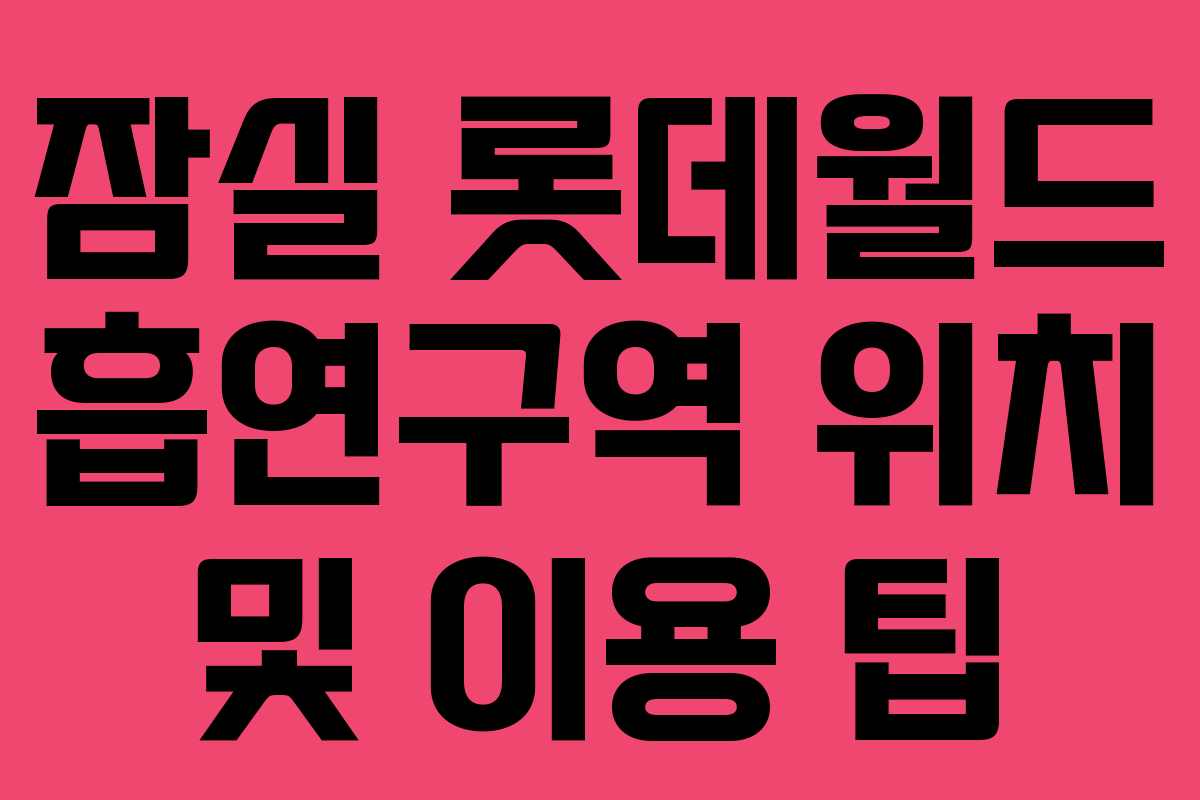 잠실 롯데월드를 방문하는 흡연자들에게 필요한 흡연구역의 위치와 이용 팁을 정리했습니다. 이 글을 통해 흡연구역의 정확한 위치, 접근 방법, 이용 시 주의사항과 에티켓을 한눈에 파악할 수 있습니다.