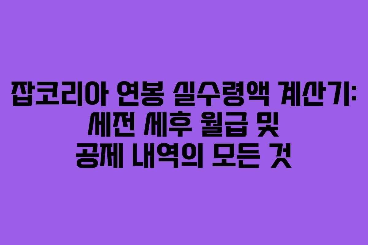연봉은 인생의 중요한 요소로, 우리의 재정적 상황을 좌우하는 중요한 기준입니다. 그러나 세전 세후 월급과 다양한 공제 내역을 이해하기란 쉽지 않습니다. 잡코리아 연봉 실수령액 계산기는 이러한 복잡한 과정을 간소화하여, 여러분이 정확한 실수령액을 계산할 수 있도록 도와주는 유용한 도구입니다.