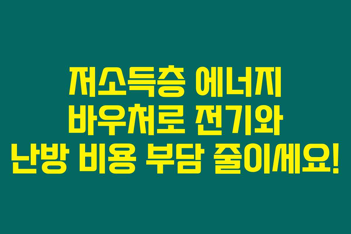 저소득층 에너지 바우처로 전기와 난방 비용 부담 줄이세요!