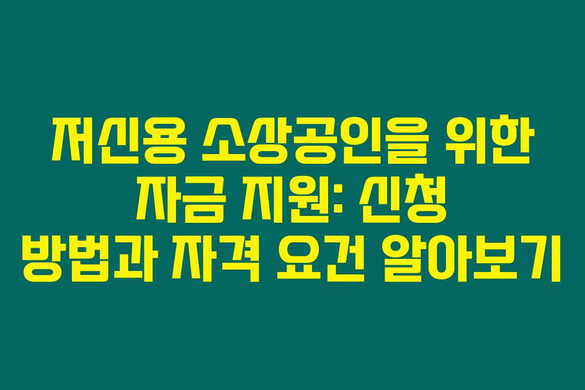 저신용 소상공인을 위한 자금 지원: 신청 방법과 자격 요건 알아보기