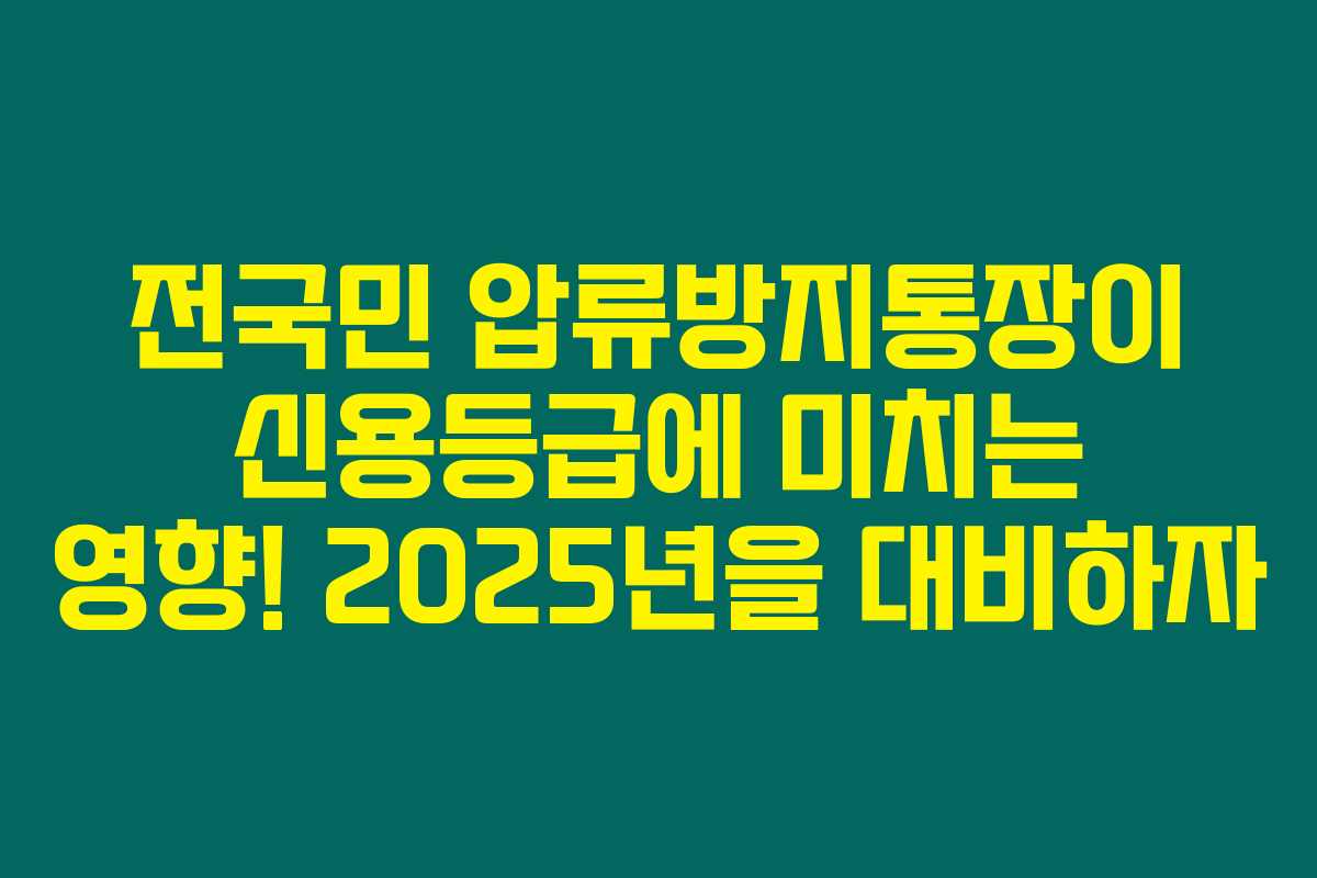 제가 직접 체크해본 결과와 여러 사례들을 통해, 전국민 압류방지통장이 신용등급에 미치는 영향과 2025년의 변화를 알아봤어요. 앞으로의 신용 관리에 유용하게 활용하실 수 있기를 바랍니다!