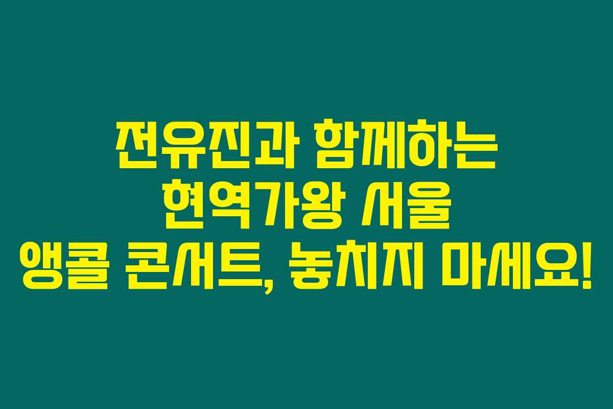 만약 전유진, 김다현 등 인기 아티스트의 생생한 무대를 경험하고 싶다면, 이 기회를 절대 놓치면 안 돼요. 서울앵콜 콘서트는 현역가왕 TOP6의 팬들을 위해 특별히 기획된 공연이거든요. 화려한 라인업과 흥겨운 무대로 가득 채워질 이번 공연에 대한 모든 정보를 확인해보세요!