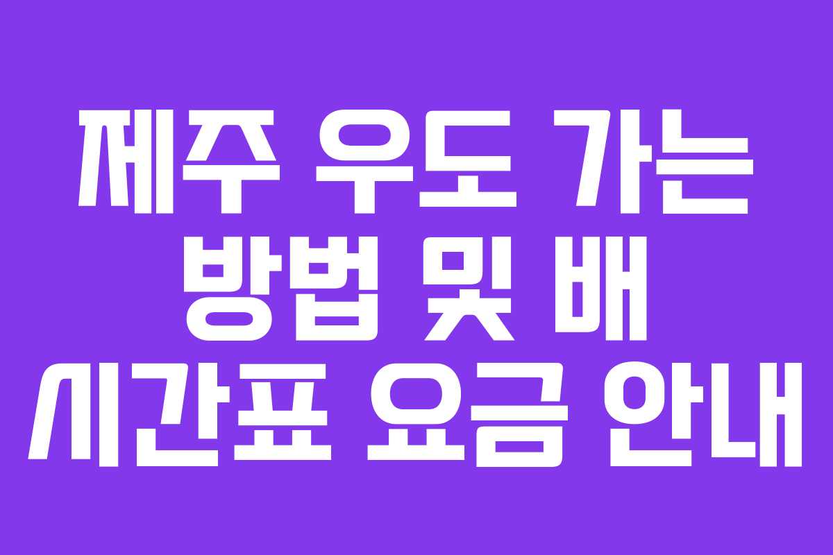 우도를 가기 위해서는 제주항이나 성산항에서 배를 이용할 수 있으며, 선택한 출발지에 따라 배 시간과 요금이 다를 수 있습니다.