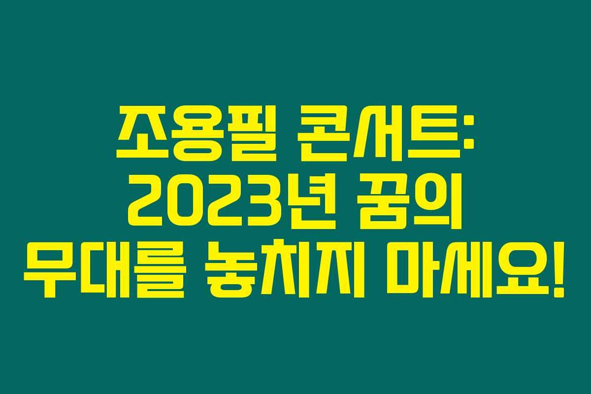 조용필 콘서트를 통해 그의 음악 세계에 빠져드는 기회를 놓치지 마세요. 다양한 정보들을 잘 참고해 멋진 경험이 되시길 바랍니다. 여러분의 성공적인 예매를 응원합니다!