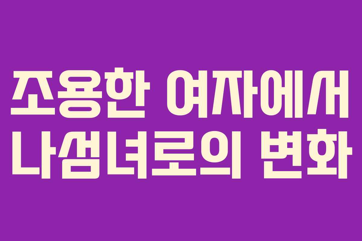조용한녀자의 변화는 그가 단순히 의견을 내는 것을 넘어, 사회에 적극적으로 나서는 ‘나섬녀’로 거듭나게 했습니다. 이들은 촛불집회와 같은 사회적 운동에도 참여하며, 여성의 목소리를 더욱 강화하고 있습니다.