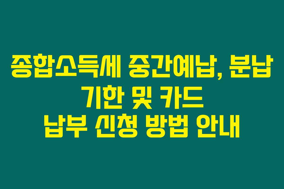 제가 직접 경험해본 바로는, 종합소득세의 중간예납은 많은 사업자분들에게 중요한 시기랍니다. 매년 11월에 해당하는 이 기간 동안 중간예납 분납 신청과 카드 납부 방법에 대해 알아보면, 조금 더 편리하게 세금을 납부할 수 있을 거예요. 아래를 읽어보시면 이와 관련된 주요 정보들을 확인할 수 있답니다.