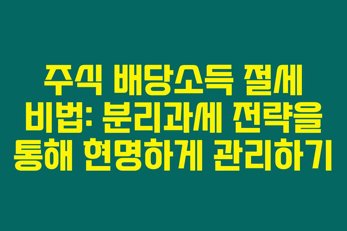 제가 직접 경험해본 결과로는, 주식 투자에서 발생하는 배당소득은 세금 부담을 크게 높일 수 있는 요소 중 하나입니다. 특히 해외 주식의 경우, 배당소득세에 대한 규정이 복잡해 절세 전략이 필수적이에요. 아래를 읽어보시면 배당소득을 분리과세로 처리하여 절세하는 다양한 방법을 소개하겠습니다.