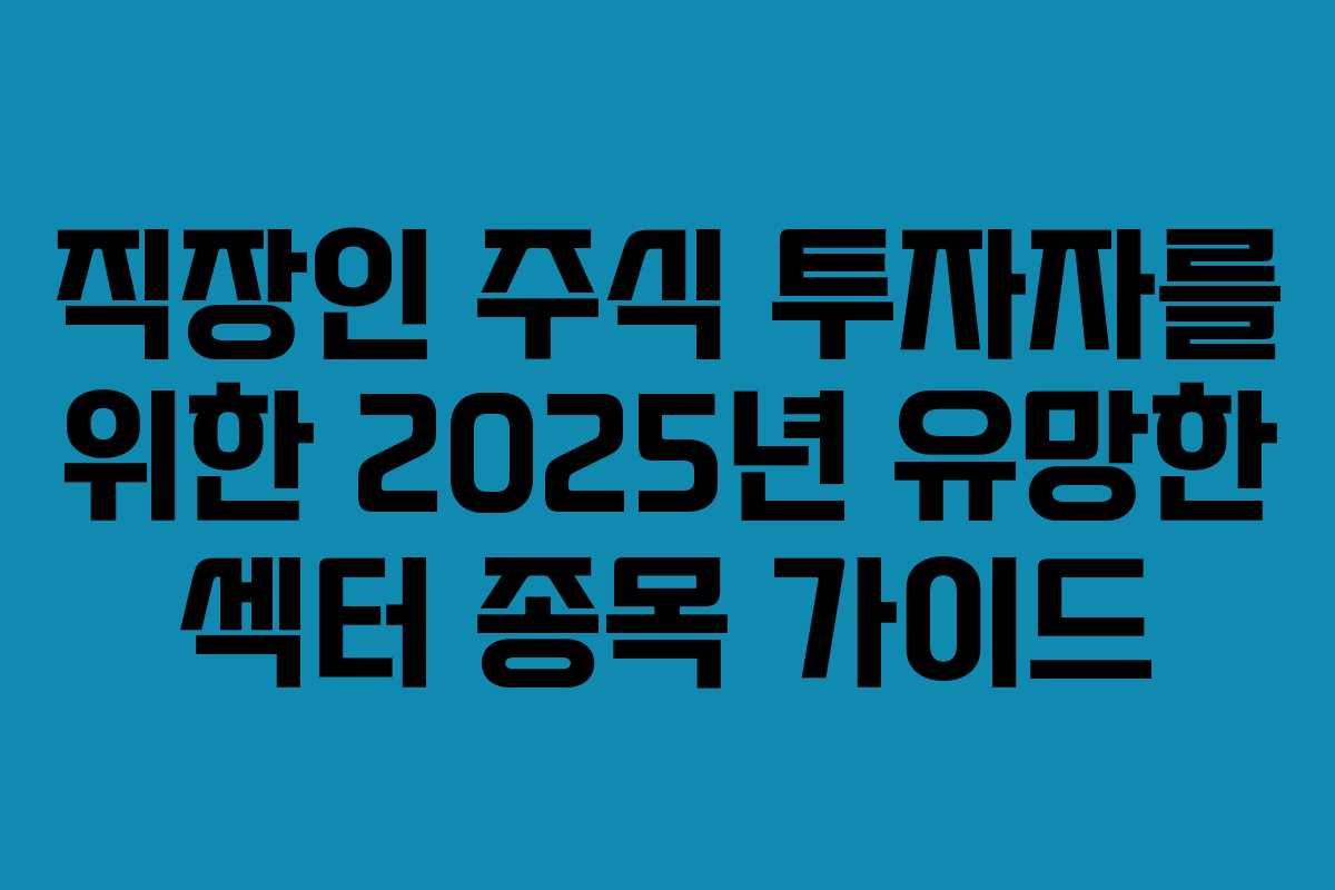 2025년 주식시장은 여전히 변화무쌍한 환경을 보여주고 있습니다. 직장인 투자자들은 바쁜 일상 속에서도 효과적인 투자 전략을 수립하여 수익을 올릴 수 있는 방법을 모색해야 합니다. 이번 포스팅에서는 2025년에 주목할 만한 국내외 주식 섹터와 각 섹터의 성장 요인, 추천 종목을 소개하겠습니다.