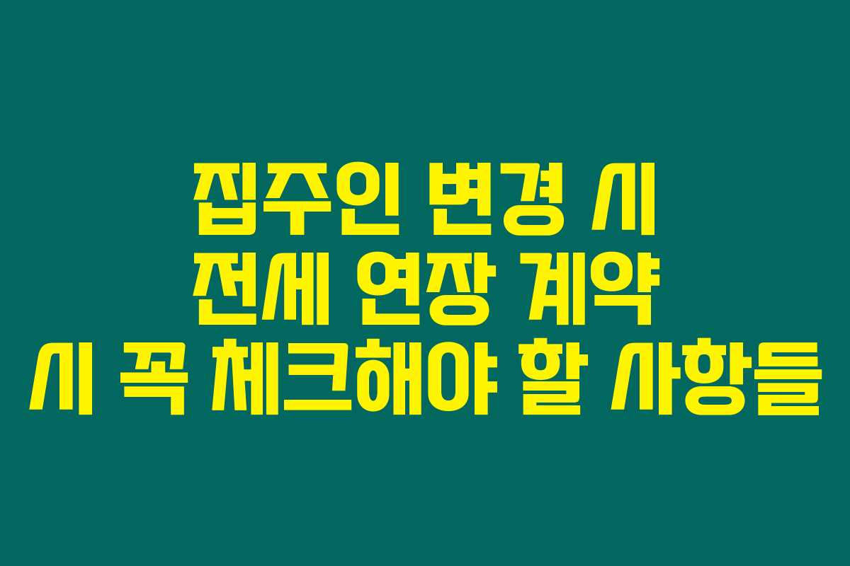 전세 계약을 갱신하고자 할 때 집주인이 변경되는 경우, 많은 분들이 어떻게 대처해야 할지 고민하게 됩니다. 특히 전세 보증금의 현 상황을 감안할 때, 계약 내용을 꼼꼼히 따져보는 것이 중요합니다. 아래를 읽어보시면 집주인 변경으로 인한 전세 연장 계약 시 주의해야 할 사항들을 정리했습니다.