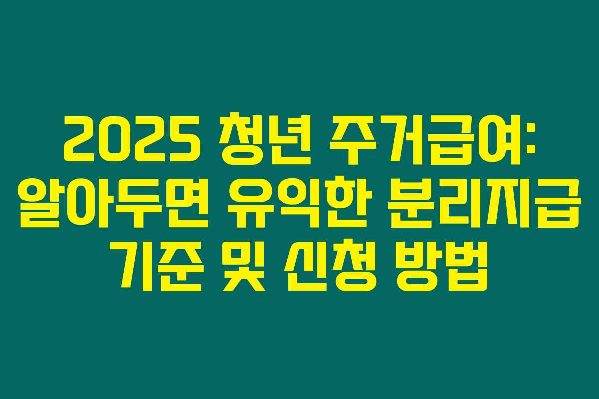 2025 청년 주거급여: 알아두면 유익한 분리지급 기준 및 신청 방법
