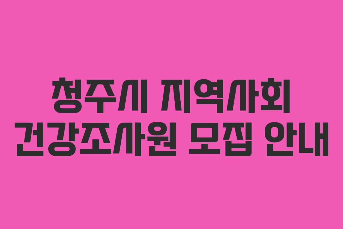 자세한 사항은 청주시 홈페이지의 ‘새소식’란에서 “지역사회 건강조사원 모집” 정보를 확인하실 수 있습니다.