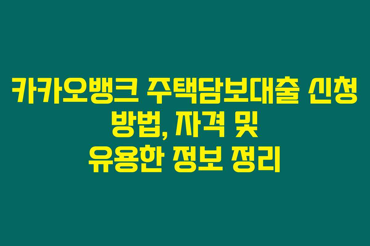 카카오뱅크 주택담보대출 신청 방법, 자격 및 유용한 정보 정리