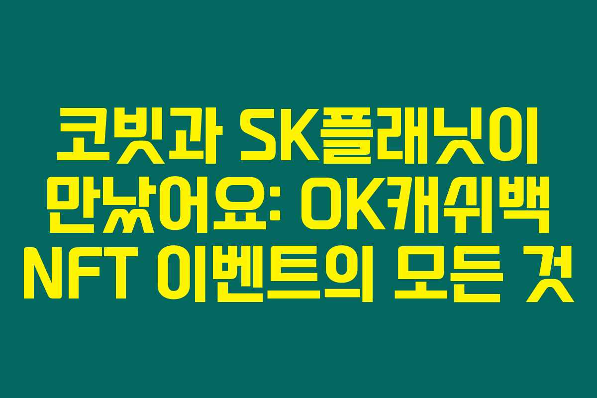 코빗(Korbit)과 SK플래닛의 협업으로 진행되는 OK캐쉬백 NFT 이벤트는 암호화폐와 페이백 시스템의 새로운 조화를 보여주는 흥미로운 기회를 제공합니다. 아래를 읽어보시면 이벤트의 자세한 내용과 혜택, 참여 방법을 확인할 수 있어요.