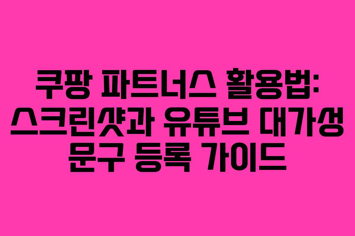 쿠팡 파트너스는 집에서 부수입을 올리고자 하는 많은 분들에게 유용한 방법입니다. 이번 글에서는 쿠팡 파트너스를 시작하는 데 필요한 스크린샷과 유튜브 대가성 문구 등록 방법에 대해 자세히 살펴보겠습니다.
